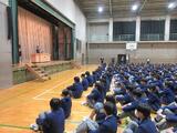 防災訓練では、本来校庭へ避難するところでしたが、校庭の状況が悪く体育館への避難となりました。そのような中、どの生徒も真剣な表情で訓練に臨んでいました。