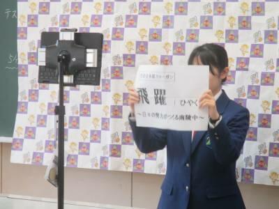 本日、生徒会の主催による生徒朝会が行われました。生徒会本部からは、新役員から活動スローガンの発表、生活委員会からは、いじめ撲滅運動についての呼びかけ、図書委員会からは、朝読書や読書月間についてクイズも交えて発表をしました。