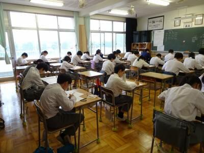 本日、3年生は、3回目のステップアップ調査(5教科)を実施しました。学力の定着状況をみるととともに、主に県公立高校の合否判定の資料として活用しています。公費(市)により実施しています。