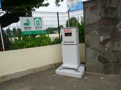 市内の(株)カマタさんより市内の全小中学校に寄贈いただいたAEDが本校正門左側に設置されました。これまで学校のAEDは校舎内にあったため休日の学校開放時の緊急対応が迅速に行われるようになりました。正門外に設置されていますので、緊急時は地域の方もご使用いただけます。