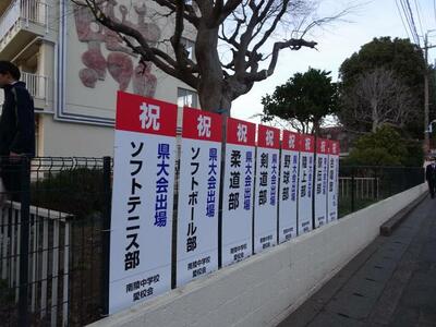 長い2学期も今秋で終わりです。一気に冬らしい1日になり、校庭の大いちょうもやっと葉をほとんど落とし冬景色となりました。今日、愛校会で作っていただいた部活動の県大会出場報告の看板が学校に届き掲示しました。下校途中の生徒が喜んだり、頑張りたいと話したりと、子供たちにとってよいプレゼントとなりました。ありがとうございました。