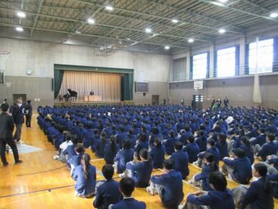 今日から3学期亜始まります。体育館での始業式では、校長講話、各学年代表、生徒会代表から新年にあたっての抱負や3学期の意気込みについて発表がありました。