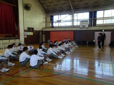 本日、市の防災無線による緊急地震速報の訓練放送を利用して、シェイクアウト訓練を実施しました。訓練の実施に実施については生徒に事前に知らせずに行いましたが、教室、校庭など、それぞれの活動場所で、身を守る行動をとることができました。