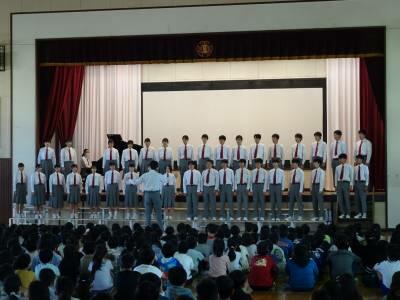 先週の合唱コンクールで銀賞を受賞した3年5組が、学校の代表として発表をしました。(金賞を受賞したクラスは11月の親善音楽会に参加します)