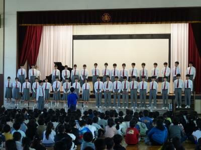 今日は、北秋津小の朝会で本校の生徒の合唱を発表する機会をいただき参加しました。