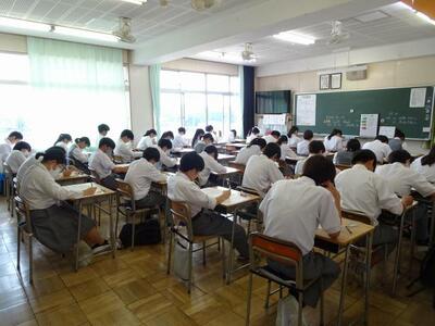 今日、3年生は、3回目のステップアップテストでした。5教科のテストに取り組みました。