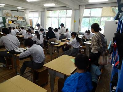 今日は、土曜公開日でした。数年ぶりに、地域の方々、学区の小学校5,6年生の皆さんにも案内し、多くの方に来校いただくことができました。