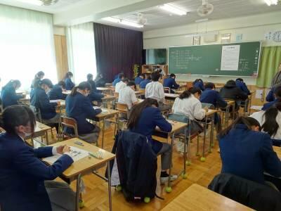 1,2年生は、今日、明日が5回目の定期テストです。1年間のまとめになります。最後まであきらめずに取り組んでほしいです。