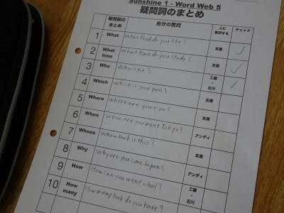 1年生の英語の授業です。疑問詞の学習で、クラスの友達やAETの先生に疑問詞を使って質問をして答えてもらうという活動を相互に行っています。積極的にコミュニケーションをとっていました。