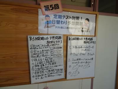 学年の廊下には、来週の定期テストに向けて、学級委員会の予想問題が掲示されています。問題を作成することがテストに向けての学習になっています。