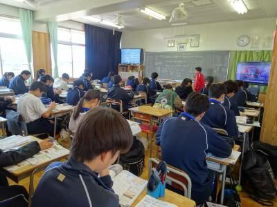 3年生の国語の授業です。谷川俊太郎の詩「あい」を取り上げ、最後の2連「あい」「愛」について考えていました。考えるにあたっては、予想して正解する ではなくて考える むずかしいからこそ今、考える と書かれ、個人で、グループで考え意見交換をしました。3年生は、明日から県公立入試です。今日が教科の最後の授業となりました。効率的に正解を探す入試対策とは対極にある時間ですが、正解をない時代を生きていく子供たちに必要な時間だと感じました。