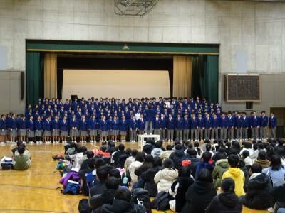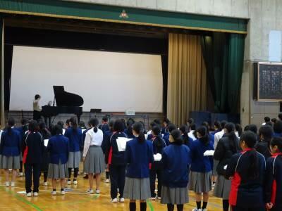 3年生は、昨日県公立高校の学力検査を終え、実技・面接のある生徒以外は、卒業式に向けての練習が始まりました。今日は、式で歌う合唱の練習をしていました。きれいな歌声が体育館によく響いていました。