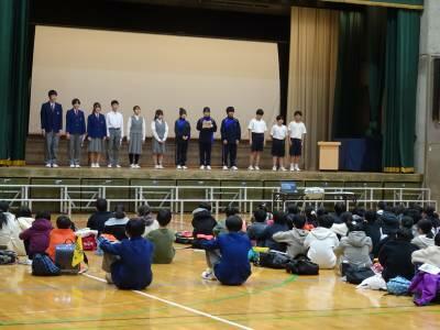 本日、午後に新入生体験入学を実施しました。体育館での全体会は、生徒会本部、学級委員、生活委員とすべて生徒の手で運営しました。2年生の合唱発表後、中学校の生活について紹介をしました。その後、クラスごとに分かれて体験授業に参加しました。なお、児童の皆さんに配布した学校紹介のリーフレットの制作、準備も3年生が行ってくれました。